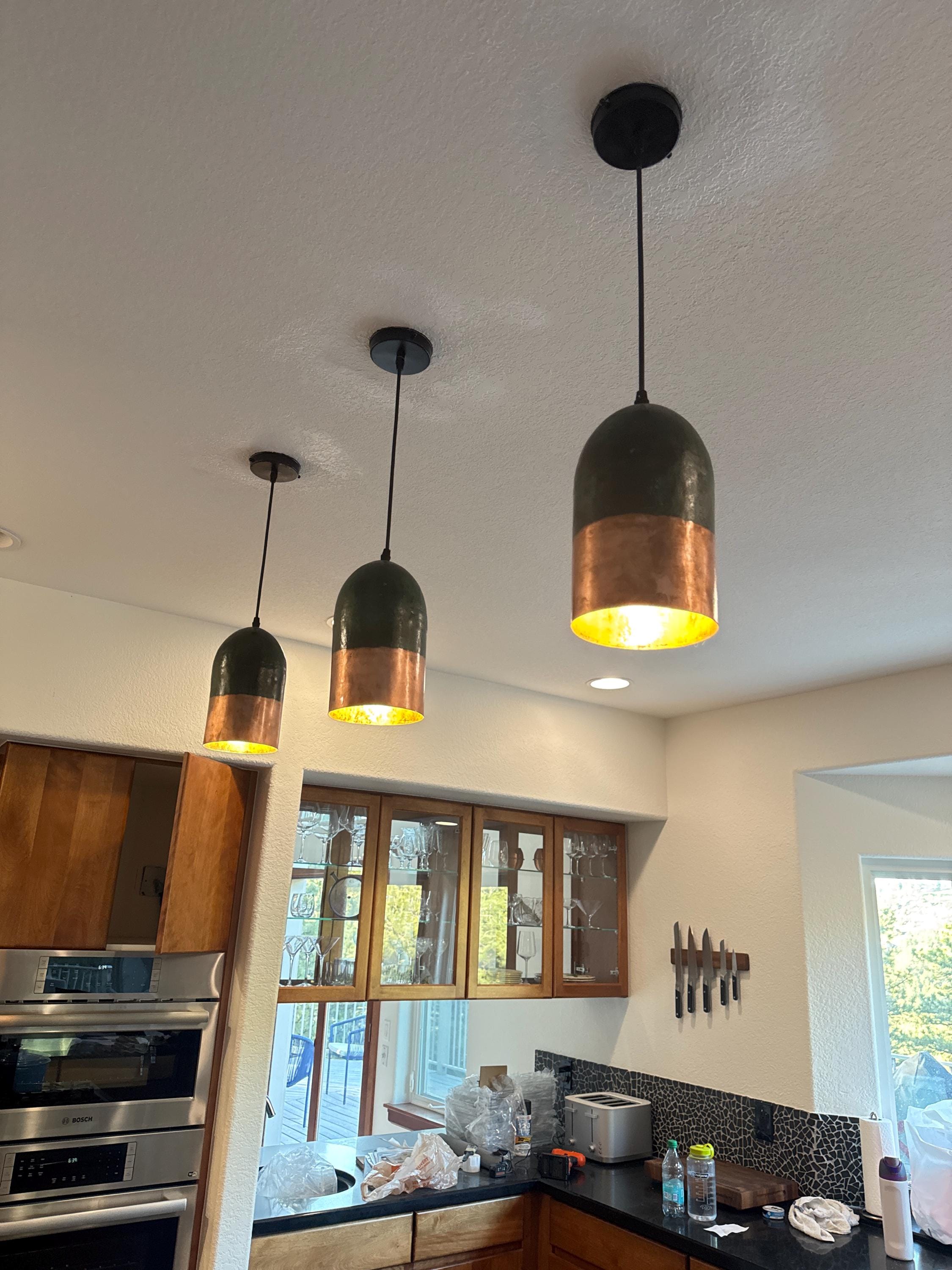 Elevate your home decor with these stunning Oxidized Copper Farmhouse Pendant Lights, designed to infuse vintage charm into your kitchen, dining area, or living space. Each pendant showcases a unique oxidized finish, adding character and warmth that perfectly complements a rustic, farmhouse aesthetic. Featuring easy installation and adjustable lengths, these versatile hanging lamps create an inviting ambiance in any room. Illuminate your space with this exquisite lighting set that effortlessly blends functionality and style, making it a perfect addition to your home